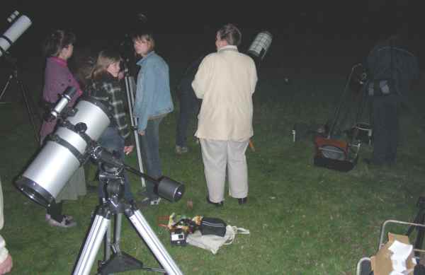 Für gewöhnliche Beobachtungen wäre die Nacht nicht geeignet gewesen. Der Himmel war mit Cirren zugekleistert und der Mond überstralte alles. Die visuelle Grenzgröße lag zwischen 3m und 4m. Mit den geplanten Beobachtungsobjekten ließ sich aus der Not eine Tugend machen. Der Mond wurde in den Teleskopen ordentlich abgebildet und der Saturnring war mit dem Blick auf die Kante gut zu sehen und auch der messerscharfe Schatten des Rings auf dem Planeten. Es wurde reger Gebrauch gemacht von der Möglichkeit, an den Okularen den Mond zu fotografieren.