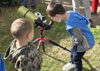 Besuchern Sonne, Mond und Jupiter im Fernrohr gezeigt.