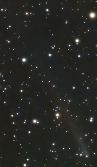 Der Kern von C/2025 K1 ATLAS hatte sich in der Zwischenzeit mehrfach geteilt. Auf dem Bild vom 18. Dezember ist nur noch Schweif erkennbar. Belichtungszeit: 11 Minuten
