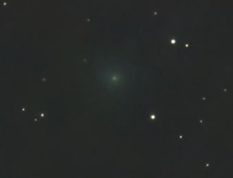 Auf der Aufnahme von Frank Vohla vom selben Morgen ist der Komet gegenüber den Hintergrundsternen versetzt. Eine Bewegung war bereits nach einigen Minuten erkennbar.