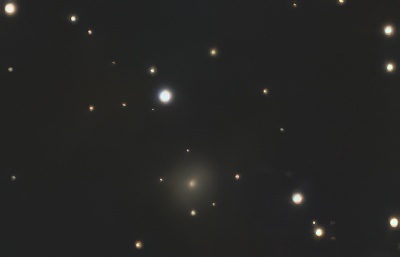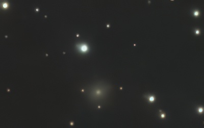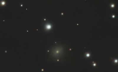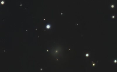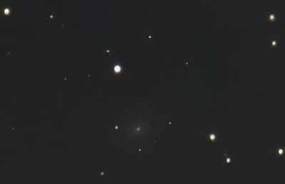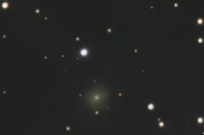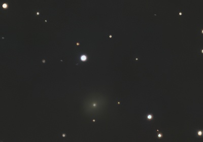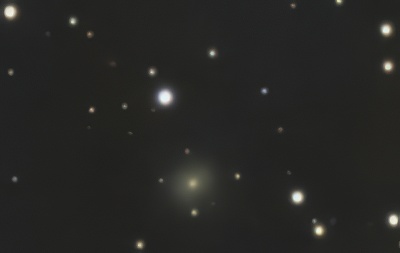 8. Mai: Zum Schätzen der Helligkeit können inzwischen die beiden Sterne unterhalb und rechts der Galaxie herangezogen werden. |